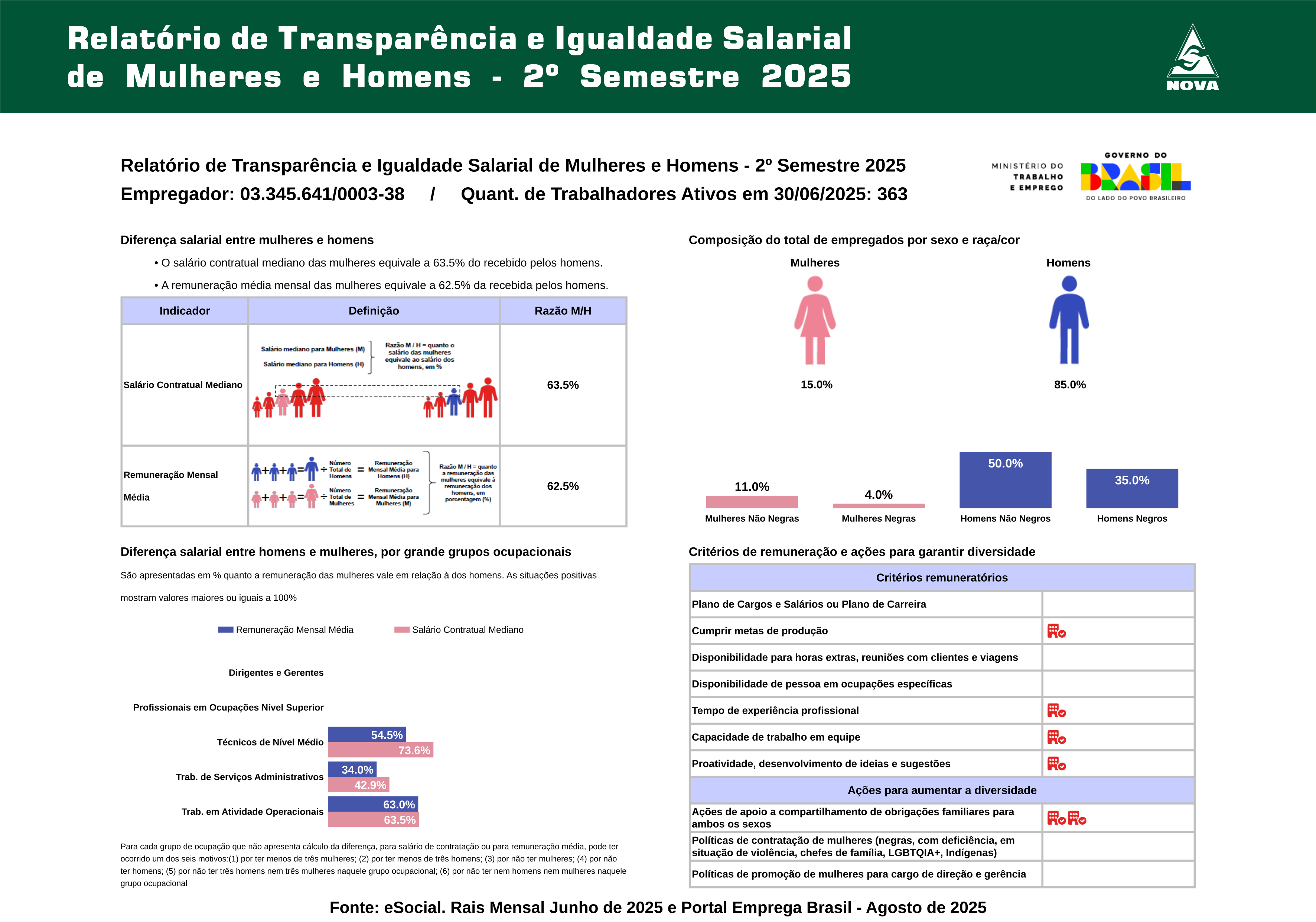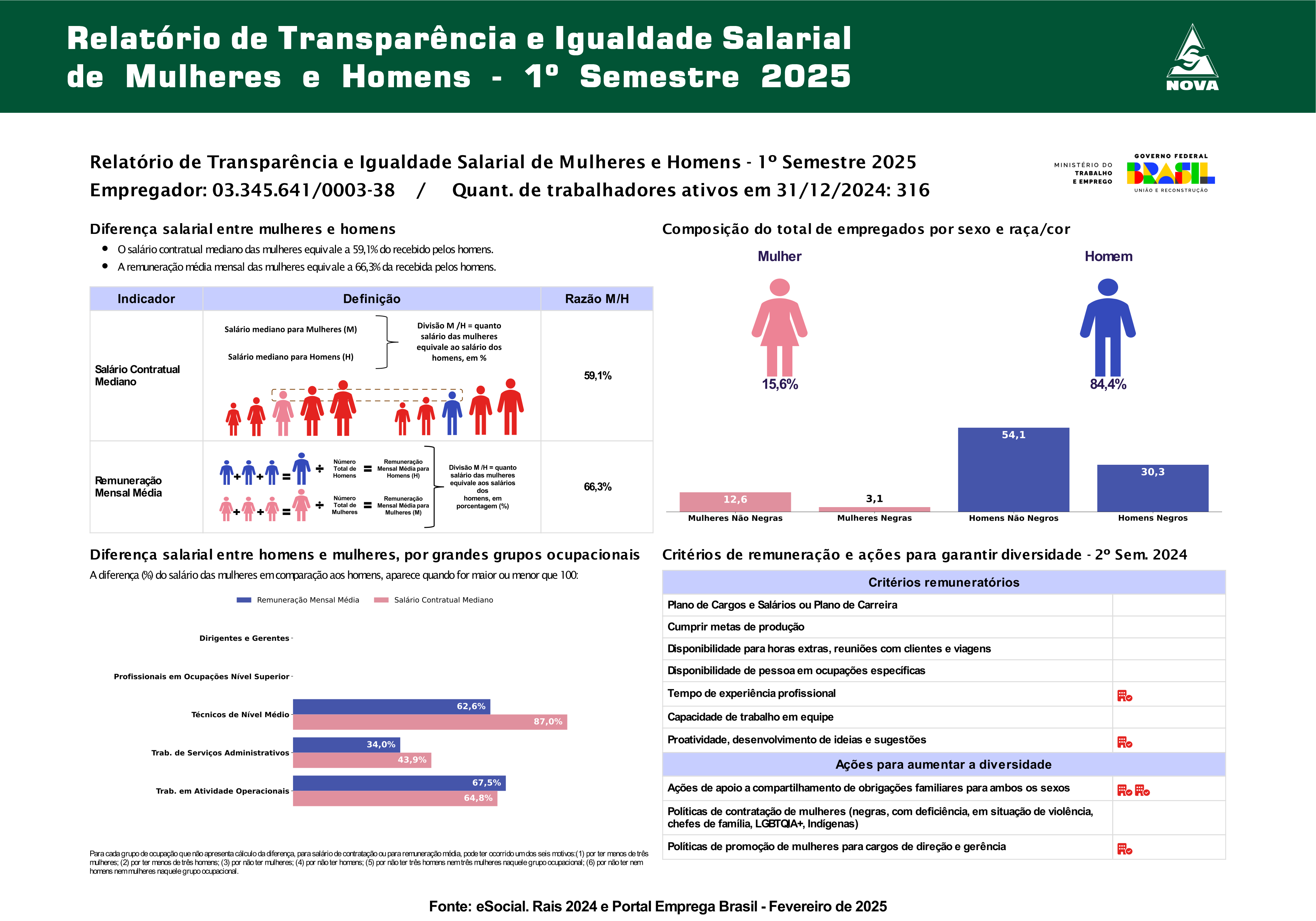 Atendendo às diretrizes da Lei Nº 14.611 de 04 de Julho de 2023, à portaria MTE Nº 3.714 ao Decreto Nº 11.795/2023 a Cooperativa Agroindustrial Nova Produtiva está disponibilizando seu relatório referente à transparência e igualdade salarial entre mulheres e homens.